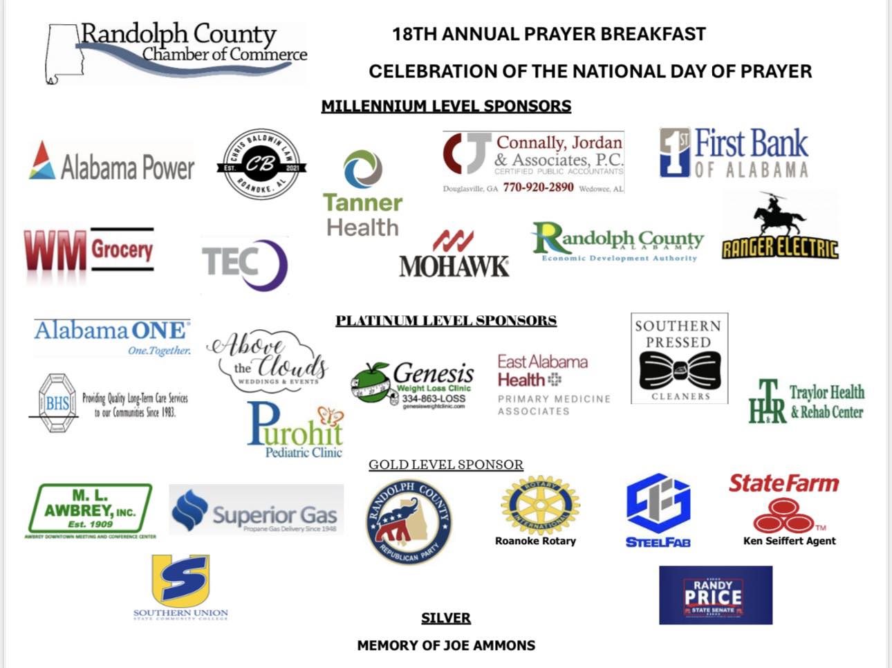 Thank you to everyone who attended the 18th Annual Prayer Breakfast hosted by the Randolph County Chamber of Commerce in observance of the National Day of Prayer. We are deeply grateful to our inspiring speakers, generous sponsors, and all who joined us for this special morning of reflection, unity, and community.